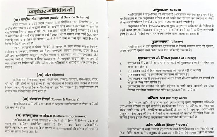 हम विद्यार्थियों के सर्वांगीण विकास पर विशेष ध्यान देते हैं, जिसमें शैक्षणिक उत्कृष्टता के साथ-साथ खेल, सांस्कृतिक कार्यक्रम और सामाजिक गतिविधियाँ भी शामिल हैं। पारदर्शी प्रशासन, छात्र-हितैषी नीतियाँ और सुरक्षित परिसर हमारे संस्थान की पहचान हैं। हमारा लक्ष्य प्रत्येक छात्र को आत्मनिर्भर, जिम्मेदार और सफल भविष्य के लिए तैयार करना है।